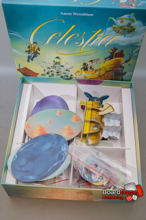 Celestia is a fun, casual game that can handle up to six players. Being a lighter game and taking about thirty minutes to play, this is a game even non-gamers can enjoy. The 3D airship is a nice touch and adds some charm and table presence. If you are looking for a press your luck game, look no farther than Celestia.