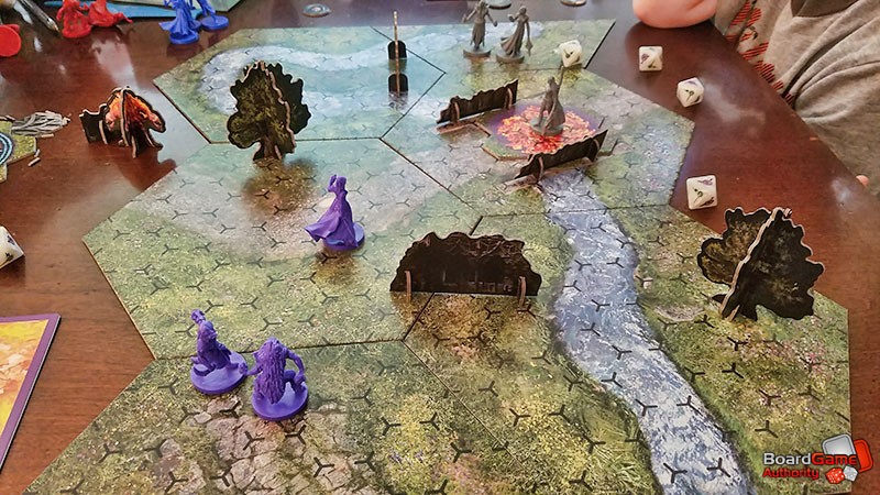 The gameplay of Incantris is fun, no doubt about it. The rules for Line of Sight, obstacles, terrain effects, etc all work together, allowing the battlefield area to be used strategically. For example, your wizards can hide behind walls and retreat past rivers.