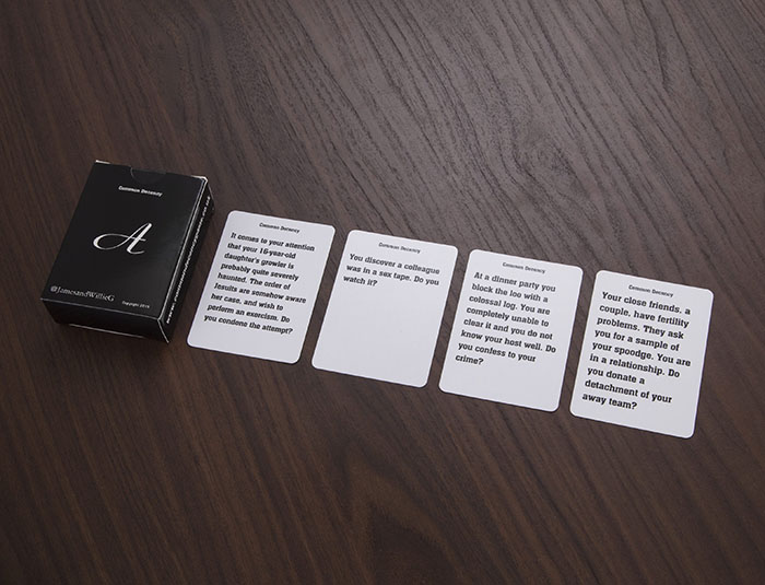Two British graduates have successfully launched an entry into the rapidly expanding market for grown up party games. The innovative Common Decency, is played by predicting other players’ responses to some of the most outrageous, hilarious, depraved and potentially compromising dilemmas imaginable, all beautifully phrased on a series of cards.