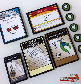 The ultimate goal of the Avatars is to find and reveal the Light Wells of Aethos. Once a Light Well is revealed, each Avatar draws a “radiance token”, which is a unique benefit to an Avatar’s characteristics, such as health, combat, or movement. There are a total of ten unique radiance tokens. If the Avatars can find the respective Light Well on each map tile, the Avatars win the game, driving the Shadow demons back into oblivion.