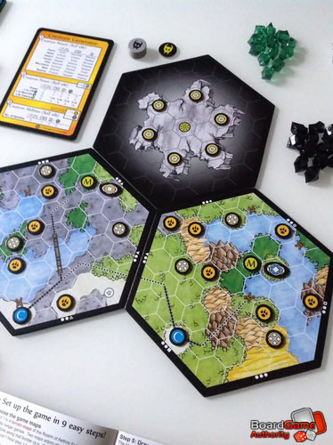 The full-color rulebook is passable, but somewhat disjointed. The sections on game setup and example game walk-through are practically flawless. However, I had mild confusion over the differing types of dice throws for combat, luck, movement, and power. As well, finding specific topics or key words can be mildly frustrating, since there is no included table of contents or appendix. Even with the mild dings against the rule book, most rules will become second nature rather quickly, and the need for future rule book research will practically be mitigated in-full after the first play-through.