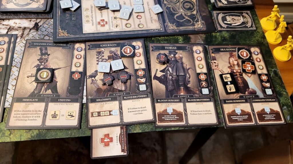 Gameplay itself is asymmetrical and scenario-driven. The Nemesis player has secret objectives, varied goals, and villain units that feel like more than just obstacles for the heroes. They have personalities, and they’re working toward rituals or sabotage, not just trying to murder the heroes outright. Sure, they’ll try to kill the heroes if they need to, but it isn’t always their only path to victory. That makes for a richer and more dynamic experience than your typical dungeon-crawler.