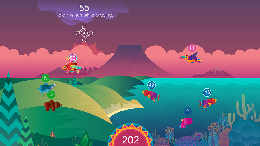 Granted, there are two special pieces that, when placed, add some additional challenge to the game, but because there are only two pieces and they do the exact same thing over and over, it gets kind of boring. The two added challenges are, “touch the sun on the device screen” and “place a piece before the end of the time limit”. Touching the screen can provide an added layer of difficulty, so I appreciate that this was included, however I found the time limit restriction to always be too long to add any pressure to the turn. I’d really like to see more of these additional challenges as they’d help keep the game interesting. As it stands though, after the first couple of plays, most interest in continuing vanishes.