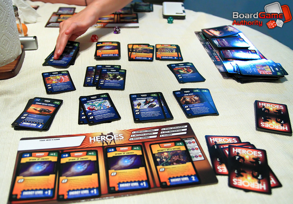 Those that have played Dominion or Thunderstone will find the setup, rules, and gameplay to be decidedly familiar. The game is cooperative, players will have to work together in order to win, but only a single player will ultimately be victorious. So while you are definitely trying to win, if you don’t work with the other players to defeat the villains, they will destroy the city you are trying to protect and all players lose the game.