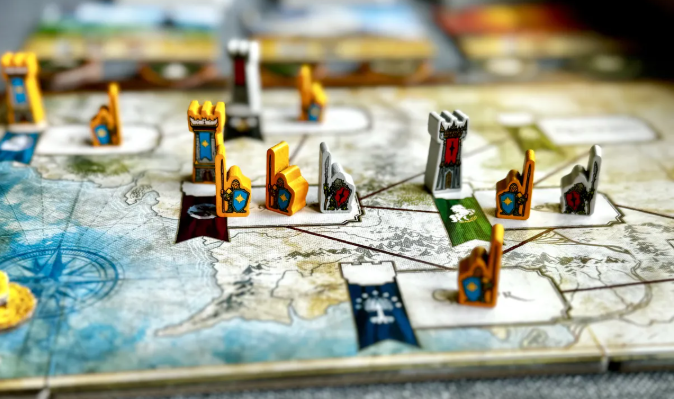 The map board is one of the biggest changes compared to other duel-style games I have played. Units can move between regions, and when opposing forces meet, they remove each other one by one until one side remains.