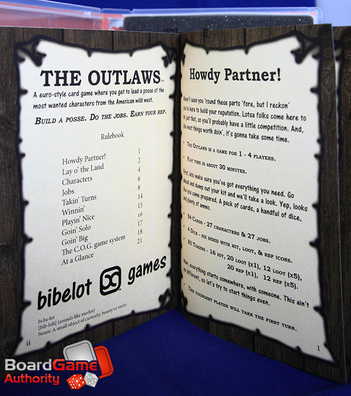The game is fun, especially if players read the card’s text out loud. The card text is both amusing and helps get everyone into the Old West outlaw mindset. And, if players use awesome accents/voices (which they just seem to slip into, unprompted) then it is all the more enjoyable. The rule book does a good job of promoting the Western feel of the game by throwing in phrases like “Howdy partner” and “I reckon”.