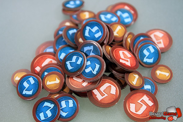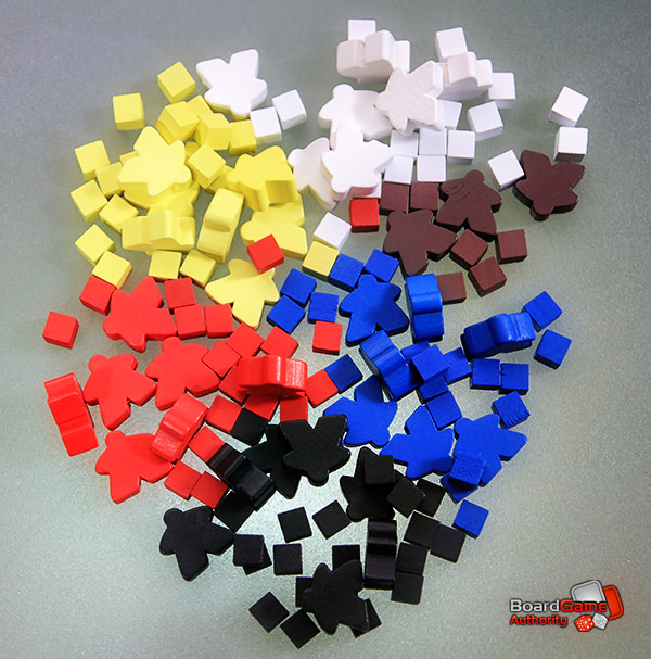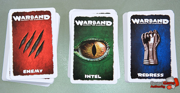 Consisting of 106 wooden cubes, 38 meeples, 100 cardboard pieces including individual boards for the 10 different races, 74 cards, and a beautifully illustrated game board, Warband: Against the Darkness is jam-packed with nice bits. The quality is all top notch with the cardboard being nice and thick. Storage is more than adequate as the game comes with enough baggies to separate all of the different colored pieces.
